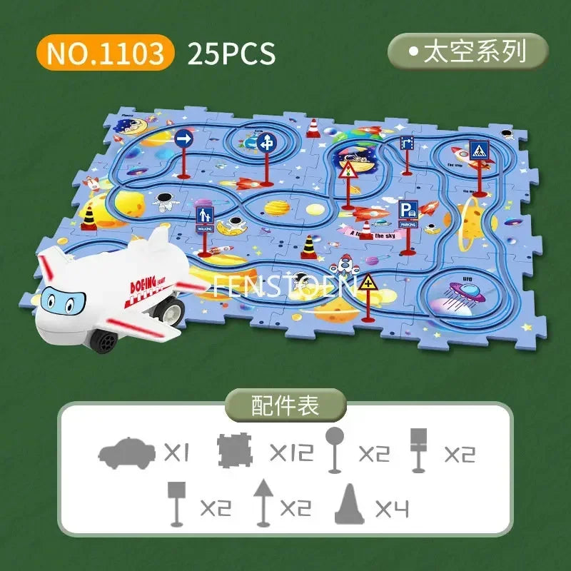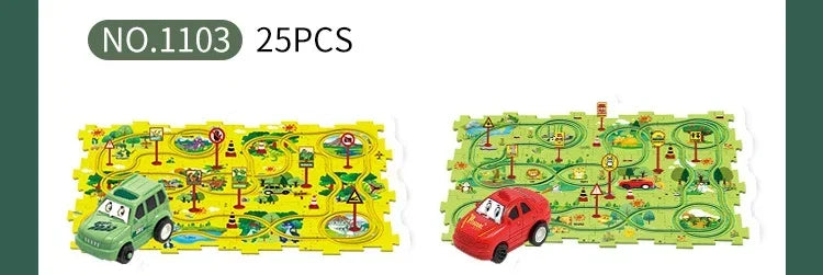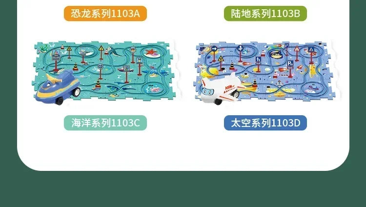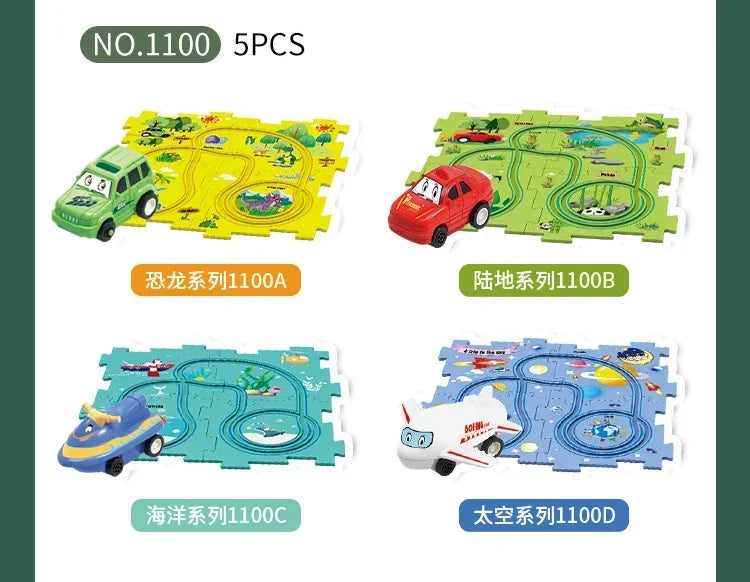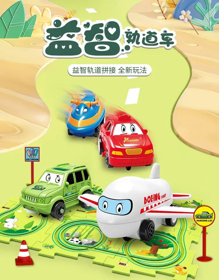 パズル感覚で道路を組み立て、車を走らせて遊べるキッズ向けカートラックセットです。カーブや分岐のある道路ピースを自由につなげて、自分だけのコース作りが楽しめます。車を走らせながら試行錯誤することで、遊びの中で自然に考える力を育てます。組み替え自由な構造で、遊ぶたびに新しい発見が生まれる知育要素のあるおもちゃです。