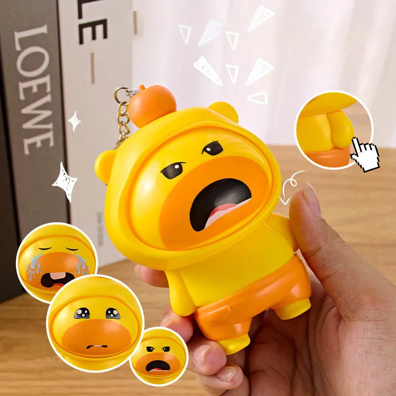 押すたびにくるくる変わる表情が楽しい、ユニークなストレス解消フィジェットキーチェーンです。手のひらサイズで持ちやすく、バッグや鍵に付けて気軽に持ち歩けます。かわいらしいデザインとやわらかな質感が心をほぐし、日常のちょっとしたストレスを遊び感覚でリフレッシュできます。子どもから大人まで楽しめる、プレゼントにもぴったりのリラックスアイテムです。