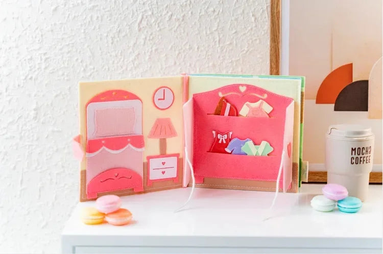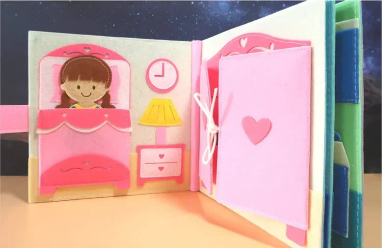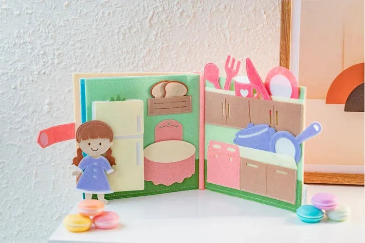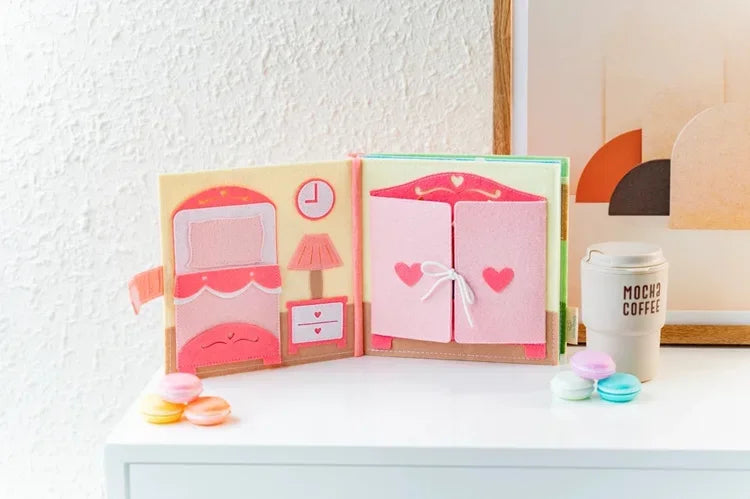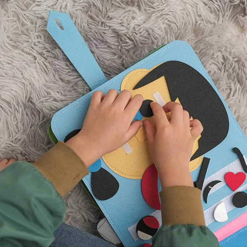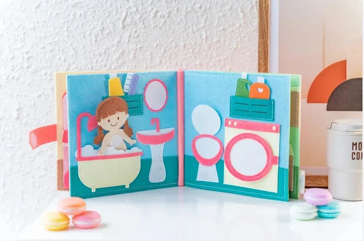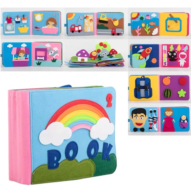 カラフルで立体的な仕掛けがいっぱいのモンテッソーリ式ビジーブック。ページをめくるたびにファスナー・ボタン・ひも結び・マッチングなど、手先を使う楽しいアクティビティが登場し、夢中で遊びながら自然と学べる布絵本です。おうち時間・移動中・外出先・静かな時間の遊びにぴったり。スクリーンに頼らず、感覚と想像力を育てる幼児教育ツールとして、保護者・保育者にも人気の知育アイテムです。