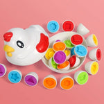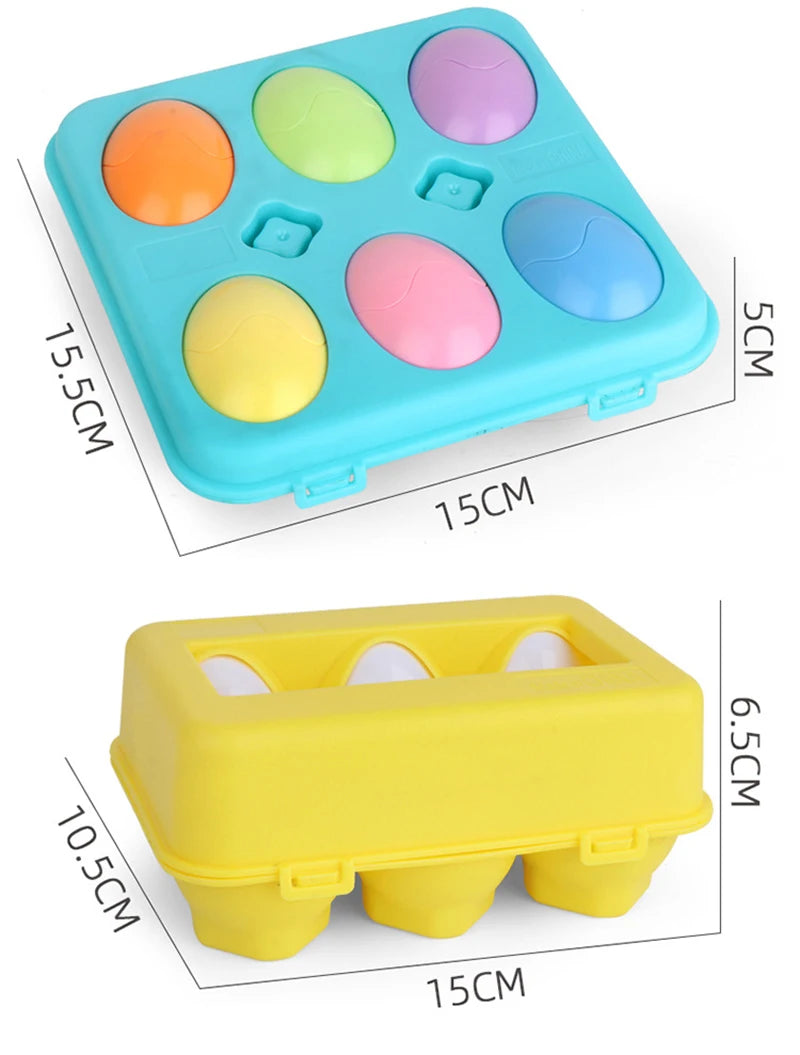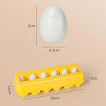 カラフルなたまご型パーツを「パカッ」と開いて、色や形を合わせてはめ込む知育おもちゃです。遊びの中で、形の認識や考える力、手先の器用さを楽しくサポート。たまごパック型のケース付きで、お片付けや持ち運びにも便利です。