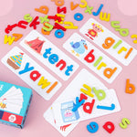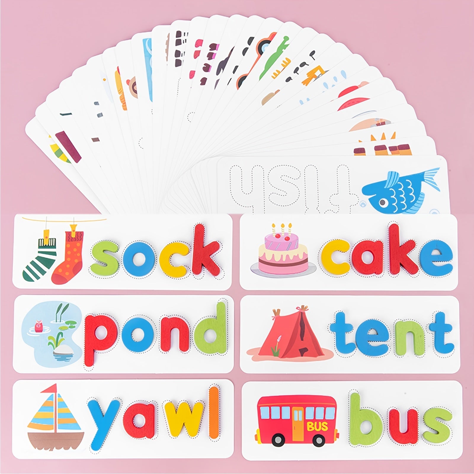 直感的に学べるWoodenパズル:カードに描かれた絵を見ながら、対応する文字ブロックを選んで英単語を完成。自然に語彙の習得へ。