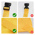 お手持ちの椅子に取り付けて、食事中の赤ちゃんを座席に安定して座らせやすくする携帯用チェアベルトです。自宅はもちろん、外食や帰省などでも使いやすく、使わない時は折りたたんで持ち運べます。
